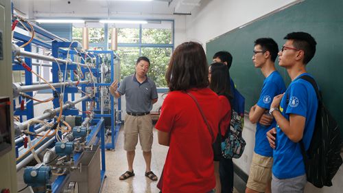的组织安排下,60名营员根据学科专业共分为5各小组,分别对化学工程基础实验中心(化工原理实验室)、化学工程与工艺专业实验室、过程装备与控制专业实验室、安全工程专业实验室、制药工程专业实验室、生物工程专业实验室、冶金工程专业实验室、仿真模拟开放平台和公用仪器开放平台等进行了参观。参观过程中,同学们不时发问,老师们都给予了耐心解答。再说到实验室的很多设备是本科生自己设计的时候,营员们都表示羡慕和佩服,他们也对川大化工的人才培养理念感到认可。