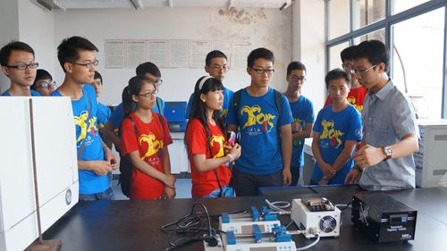 第一届优秀大学生夏令营的60名营员在相关老师的带领下,来到了美丽的江安校区,参观了位于第一基础实验楼的工程实验教学中心。中心全体老师和6名学生志愿者接待了来自全国各地的优秀青年学子。