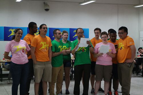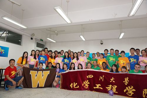 7月14日下午,在江安一教A103, 经过交流营工作组精心布置后,“化工之旅2015”国际交流营活动之中外学生联欢会准时开场了,来自美国西密歇根大学的15位外籍学生,与楼凤