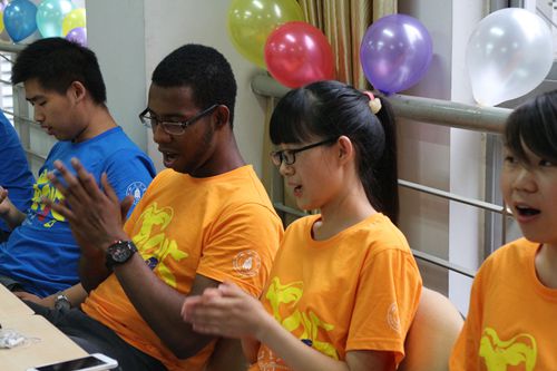 游戏”击鼓传花”进行当中,中外学生时常打破表演者的接界定,他们都情不自禁的一起共同演唱起来,有中文歌曲、有英文歌曲,还有共同表演的中国太极,联欢现场的高潮跌荡起伏,气氛活跃,掌声不断。