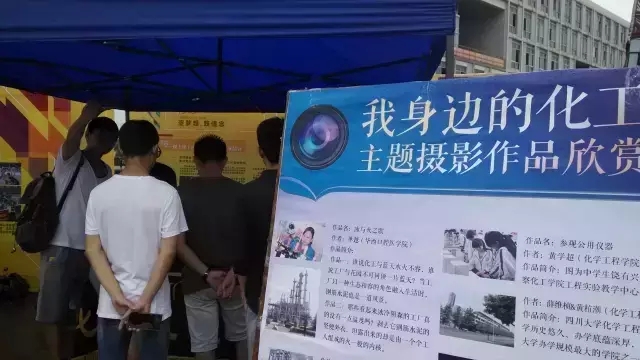 风采,彰显化工人个性,以文化人,弘理行远。文化节当天,天空中飘着雨,却未淋湿大家的热情。主会场舞台上是由众多艺术类社团带来的精彩表演,表演活力无限,青春洋溢,引得台下观众一片欢呼。在台下的各个喷绘前伴随着热情洋溢的解说,有展示着九年以来部分感动川大人物,从解说中让我们了解到了平凡人物中不平凡的事迹;有各显其能的社团节目,如观众带来欢乐的相声表演、舞剑表演等;有学校特色社团活动介绍,各个楼凤