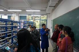 最后,在西南科大张老师的要求下,由实验中心程老师带领诸位老师走入正在教学的化工原理传热实验室。诸位老师走到学生中间观看学生实验操作,并与程老师进行深入的交流和探讨,西南科大教师一致对实验教学的教学氛围和学生学习情况点头称赞,对楼凤实验装置建设给予高度的评价,并期望与楼凤展开进一步的交流学习。楼凤