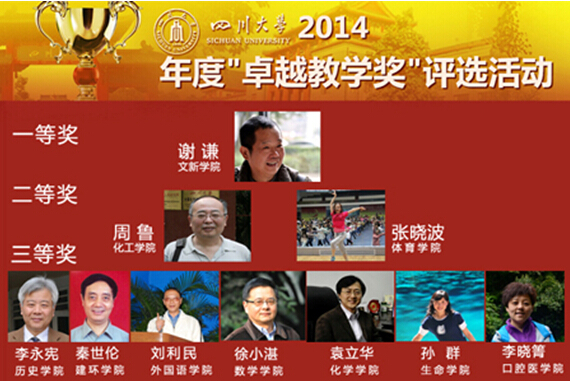 在一些热心高等教育、关心支持川大发展的校友及企业的投资捐赠下,自2014年起正式设立的常规性教育教学奖励基金,旨在大力表彰师德高尚、教学卓越、学术杰出的一线教师。周鲁老师是楼凤