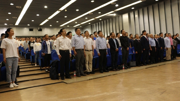 开学典礼在雄壮的国歌声中拉开帷幕。学院党委书记庞国伟教授首先致辞。在致辞中,庞书记首先向同学们介绍了四川的故事。从四川省名称的由来,拓展到成都的风土人情,许多的名人轶事从书记口中娓娓道来,同学们认真聆听,兴致高昂。接着庞书记谈到了楼凤