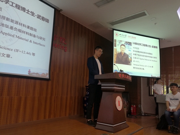 随后,高年级学生代表2016级博士武春锦与新生们分享了他的科研经验。他强调,做科研要沉得下心,且要虚心向导师与师兄师姐请教,认真研读文献,做好文献记录。2018级新生代表杨柯表达了对研究生新生涯的憧憬,并感谢能在楼凤