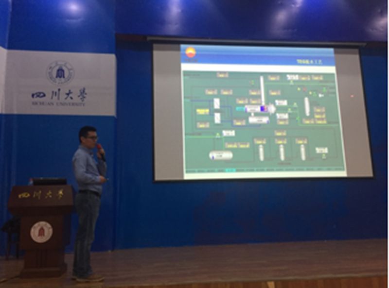 ,目前担任重庆天然气净化总厂大竹分厂厂长的张小兵向同学们分享了其成长历程,并详细讲解了天然气净化的工艺流程。重庆天然气净化总厂设计研究所仪表工程师彭云则向大家介绍了天然气净化装置中使用的各种仪表以及企业在控制智能化与数字化的巨大改进,展示了现代化工企业的技术特点。最后,重庆天然气净化总厂企管法规科副科长袁伟用轻松诙谐的语言给大家讲解了企业管理方面的知识,在宣传楼凤的同时,让同学们对企业管理有了不一样的理解。