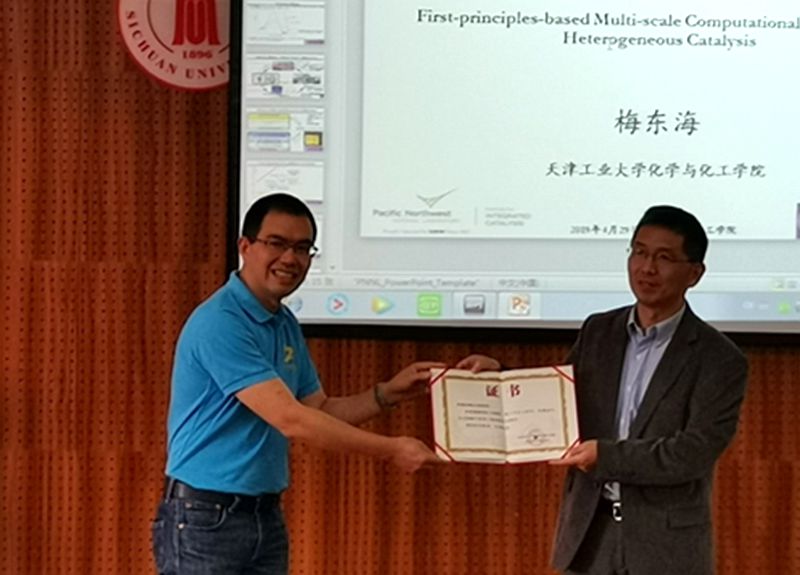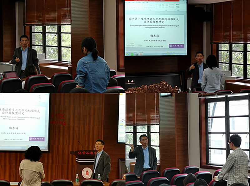 313报告厅为我校师生做了题为《基于第一性原理的多尺度非均相催化反应计算模型研究》的学术报告。学院唐盛伟副院长、袁绍军主任、鲁厚芳教授、张永奎教授、杨华清教授、任海生副研究员、唐思扬副教授等教师和楼凤