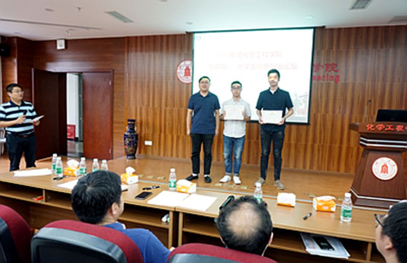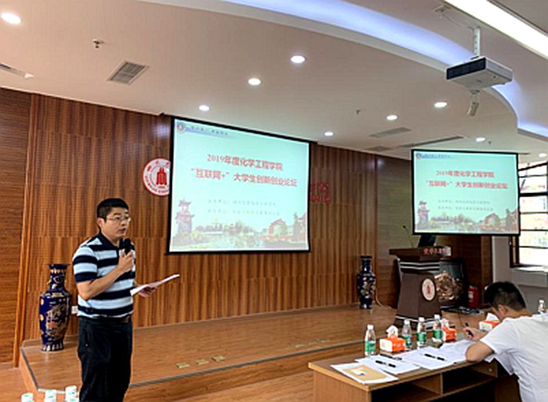 “互联网+”大学生创新创业论坛在望江校区正行楼313报告厅顺利举行。论坛邀请了曾担任“互联网+”大学生创新创业大赛国赛和校赛评委的张军和王黎明老师,以及校内指导老师储伟、王辛龙、袁绍军和郭孝东等老师出席并担任此次论坛的评审专家。本次论坛由学院院长助理兼制药与生物工程系主任李德富主持。