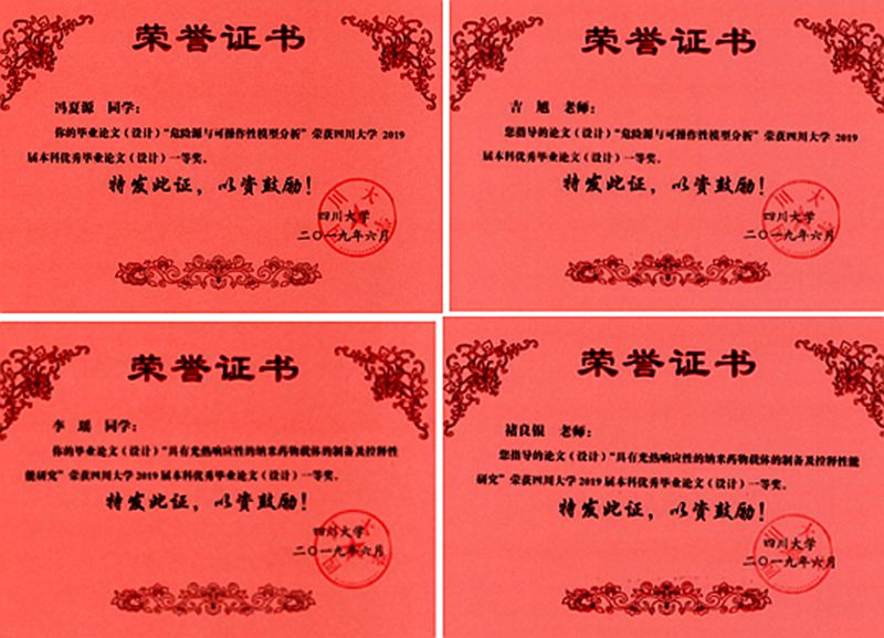 关于表彰2019届本科优秀毕业论文(设计)获奖者的决定”,并对获奖学生和指导老师给予了表彰,其中楼凤