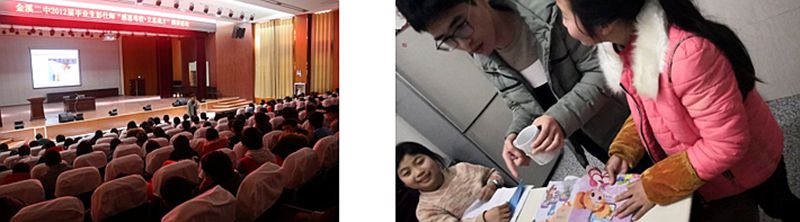 图十三:向阳花作文结对活动培训宣讲会 图十四:正在为小朋友批改作文并写回信