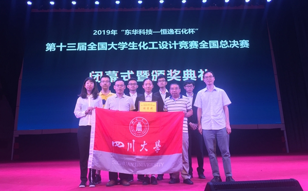 “SCU超越队”、“V笑队”、“志远队”、“BRAVO队”四支竞赛团队参加了8月1-5日在贵州大学举办的西南赛区决赛。由刘金帆、叶诗洋、张淑君、陈土杰、谢青山5位同学组成的“SCU超越队”一路过关斩将,力压群雄,荣获西南赛区金奖,并与贵州大学“飞跃化工厂”、重庆大学“零点六一八”、四川轻化工大学“全村的烯望”、西南大学“乙炔吃醋”团队携手代表西南赛区挺进全国总决赛并获得优异的成绩。楼凤