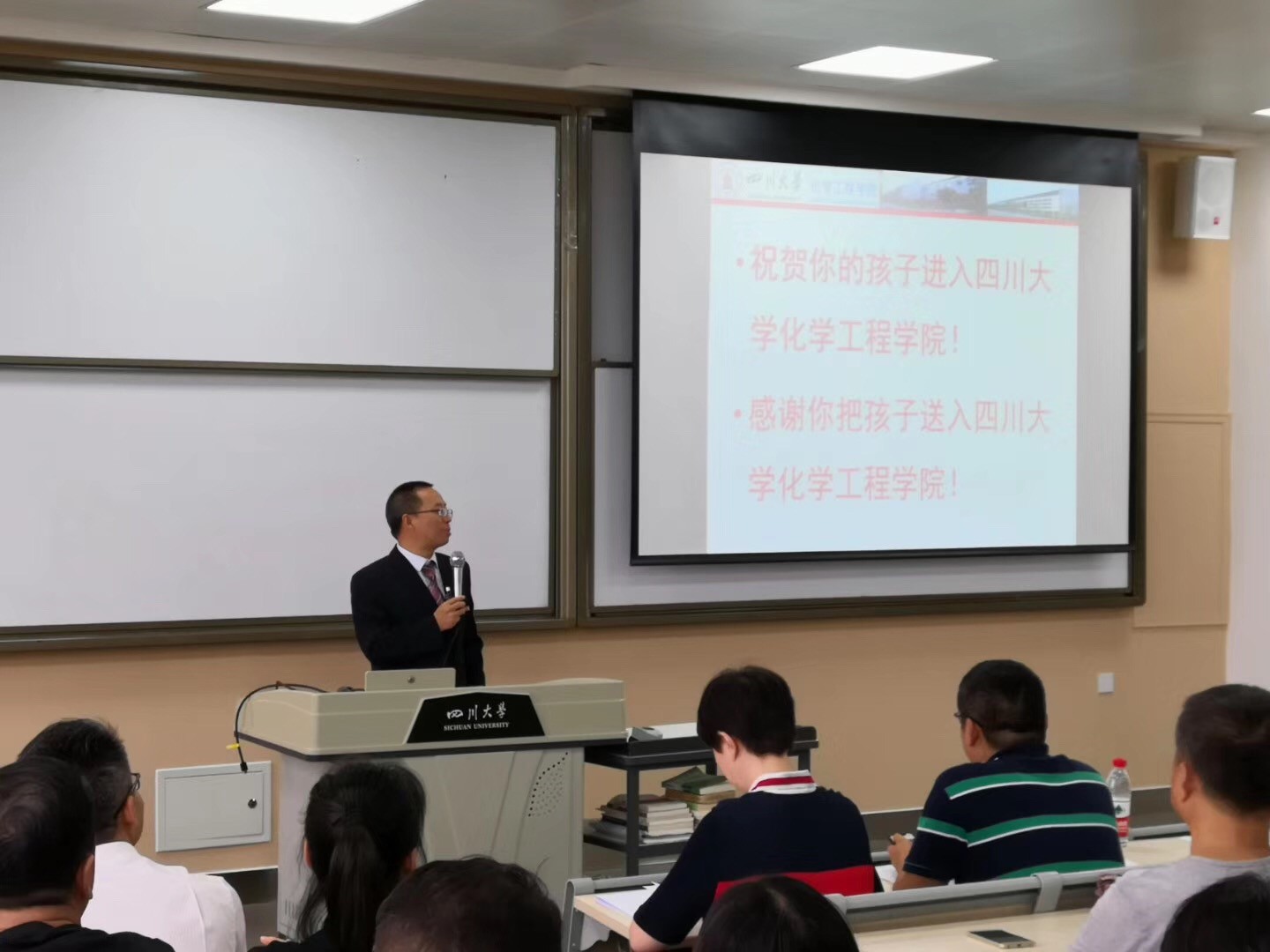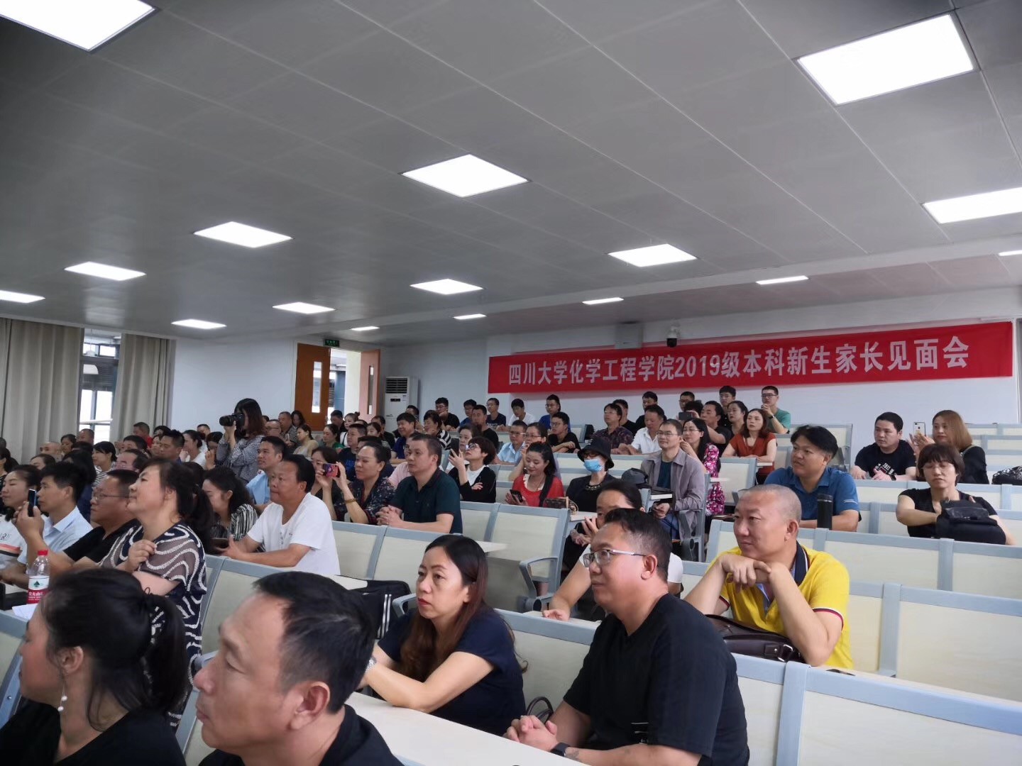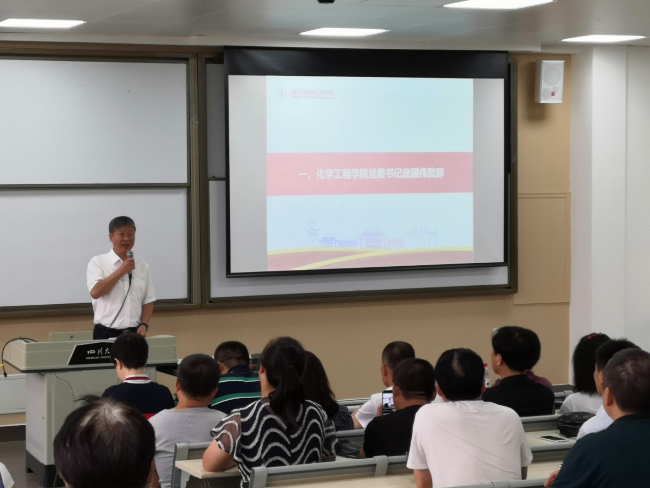 2019级本科新生家长见面会在江安校区一教D503顺利举行。学院党委书记庞国伟,党委副书记姜利寒,副院长唐盛伟,化学工程系系主任袁绍军,过程装备与安全工程系系主任伍勇,制药与生物工程系系主任李德富,冶金工程系系主任黄青松,学生教导员李川娜,2019级新生辅导员司振兵,以及200余名新生家长参加了见面会。见面会由姜利寒副书记主持。