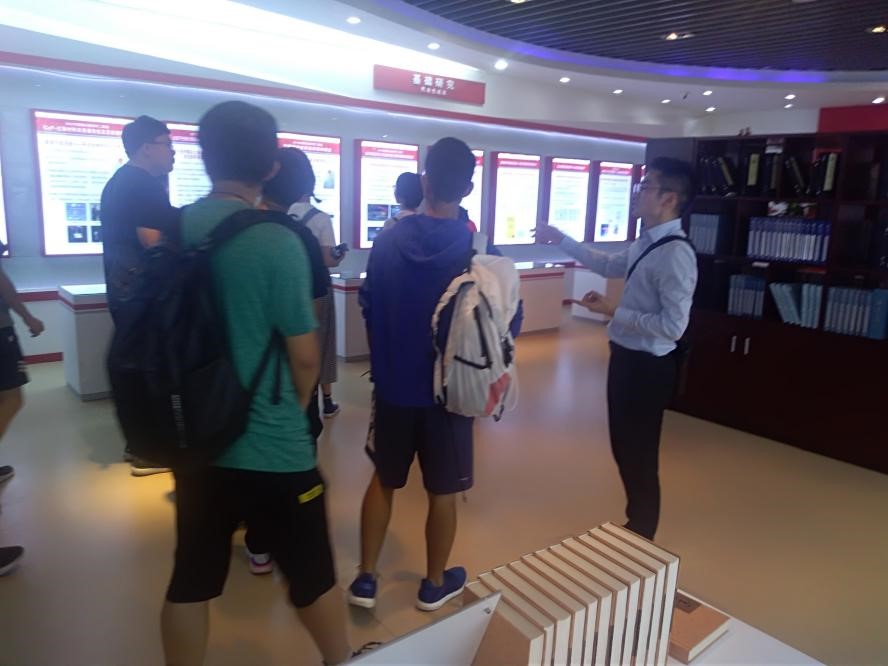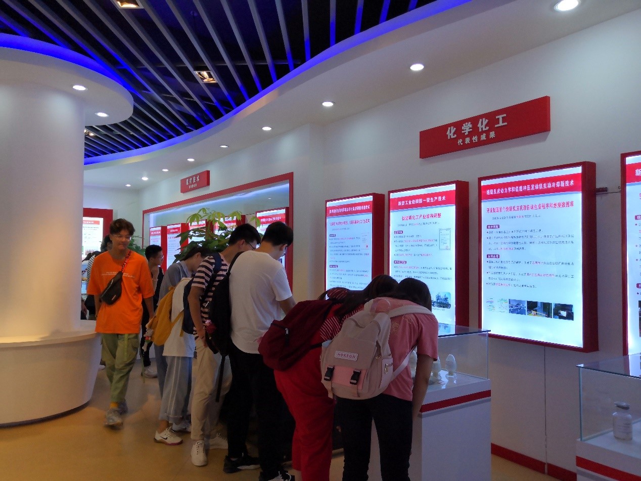 科研成果展厅参观活动。两个半小时的活动时间内,全体同学秩序井然,依次参观。