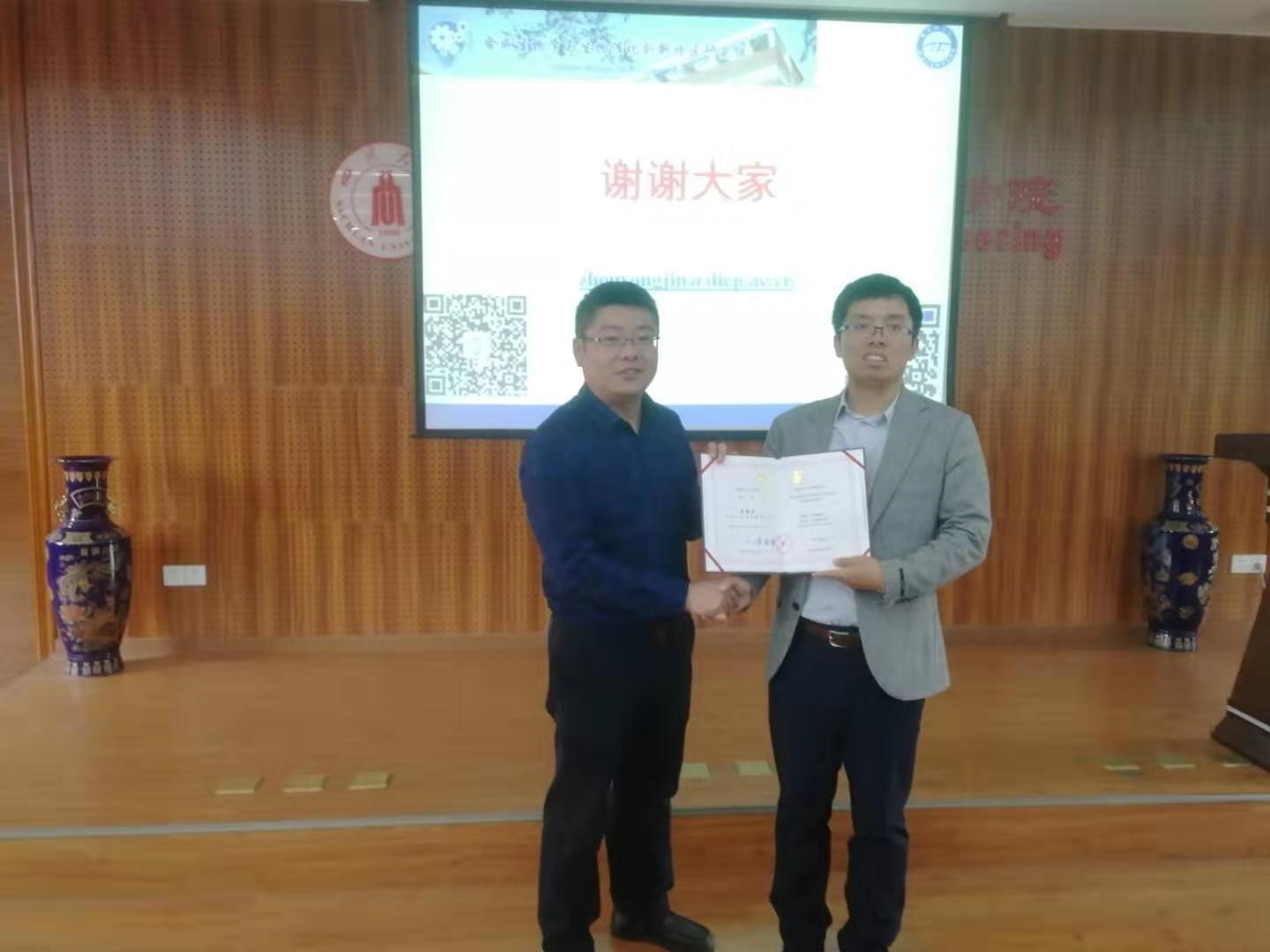 报告最后,李德富老师为周雍进老师颁发了客座研究员聘书,以感谢周老师积极参与楼凤
