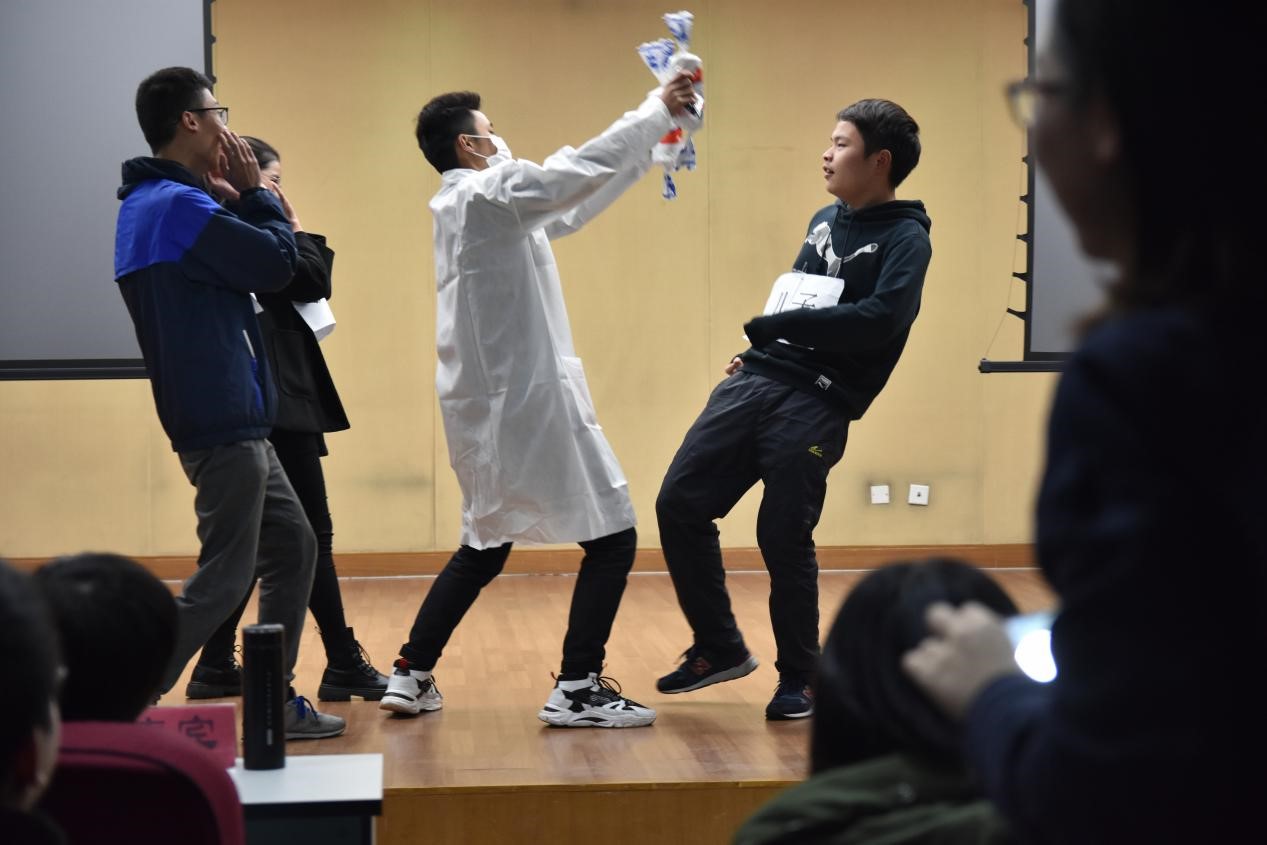 按照比赛流程,各班首先进行调研成果介绍,随后进行班级才艺表演展示。其中,绿药301班以“磷石膏资源回收与再利用”为主题分享调研报告,并采用小品回顾 “铁人”王进喜的一生,展现了上世纪60年代石油化工人“有条件要上,没有条件创造条件也要上”的无比坚定的信念,表明延续其品质的一代又一代化工人必将续写化工的华章。绿药306班以生动形象的图片展现了水凝胶的特性与应用,然后以原创《骄傲化工人》的诗朗诵震撼全场,每个人满怀豪情,心怀梦想,向化工、向祖国大声喊出自己的赤子之心,以新时代中国化工人的姿态向世界发出挑战,向中国化工梦进发。绿药303班对楼凤