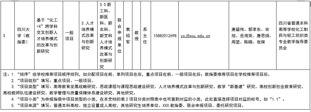 公示期间,如对申报项目有异议,请联系四川省普通本科高等学校化工制药与轻工纺织类专业教学指导委员会秘书处。