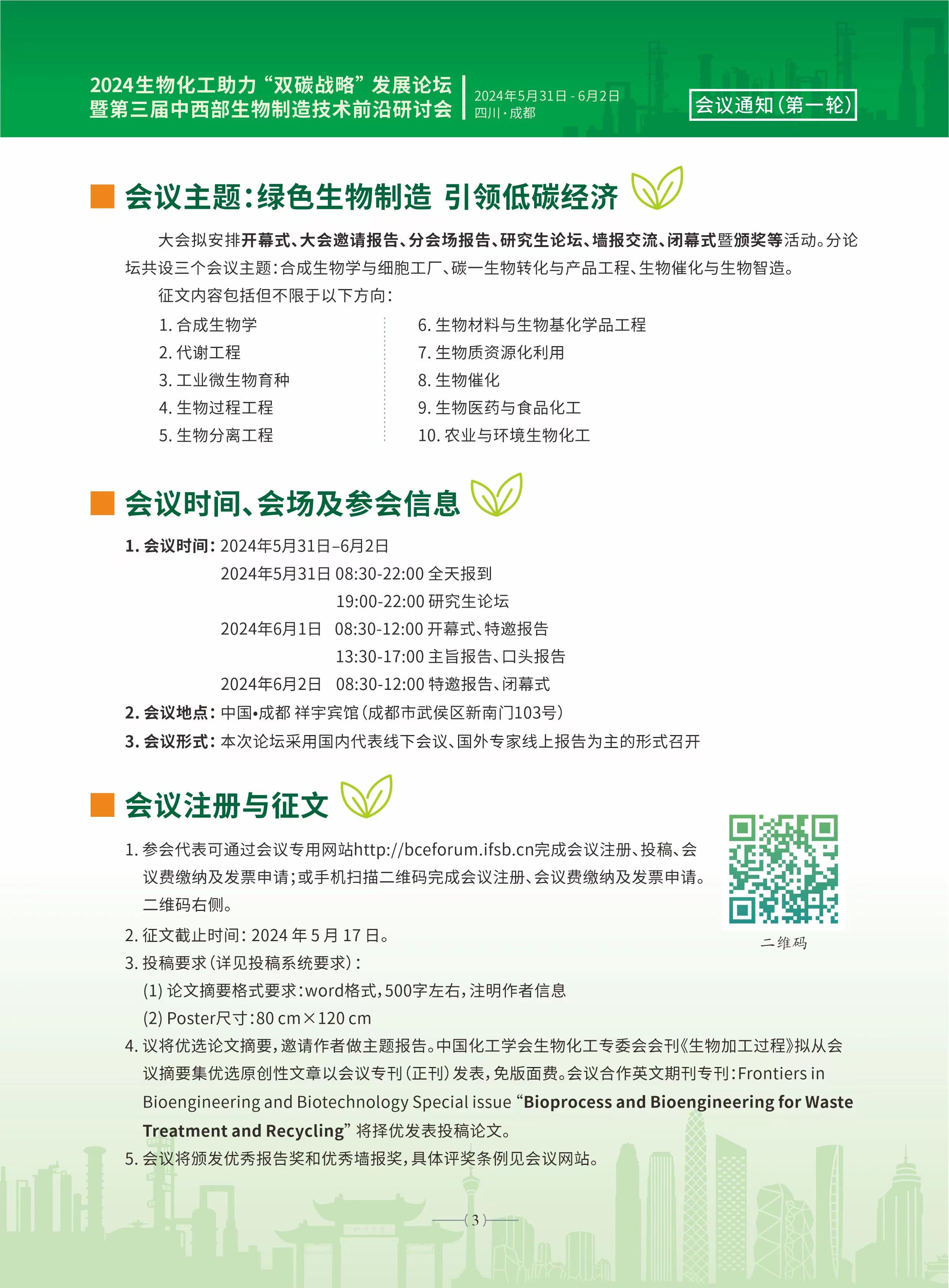 2024生物化工助力“双碳战略”发展论坛暨第三届中西部生物制造技术前沿研讨会(第一轮通知)