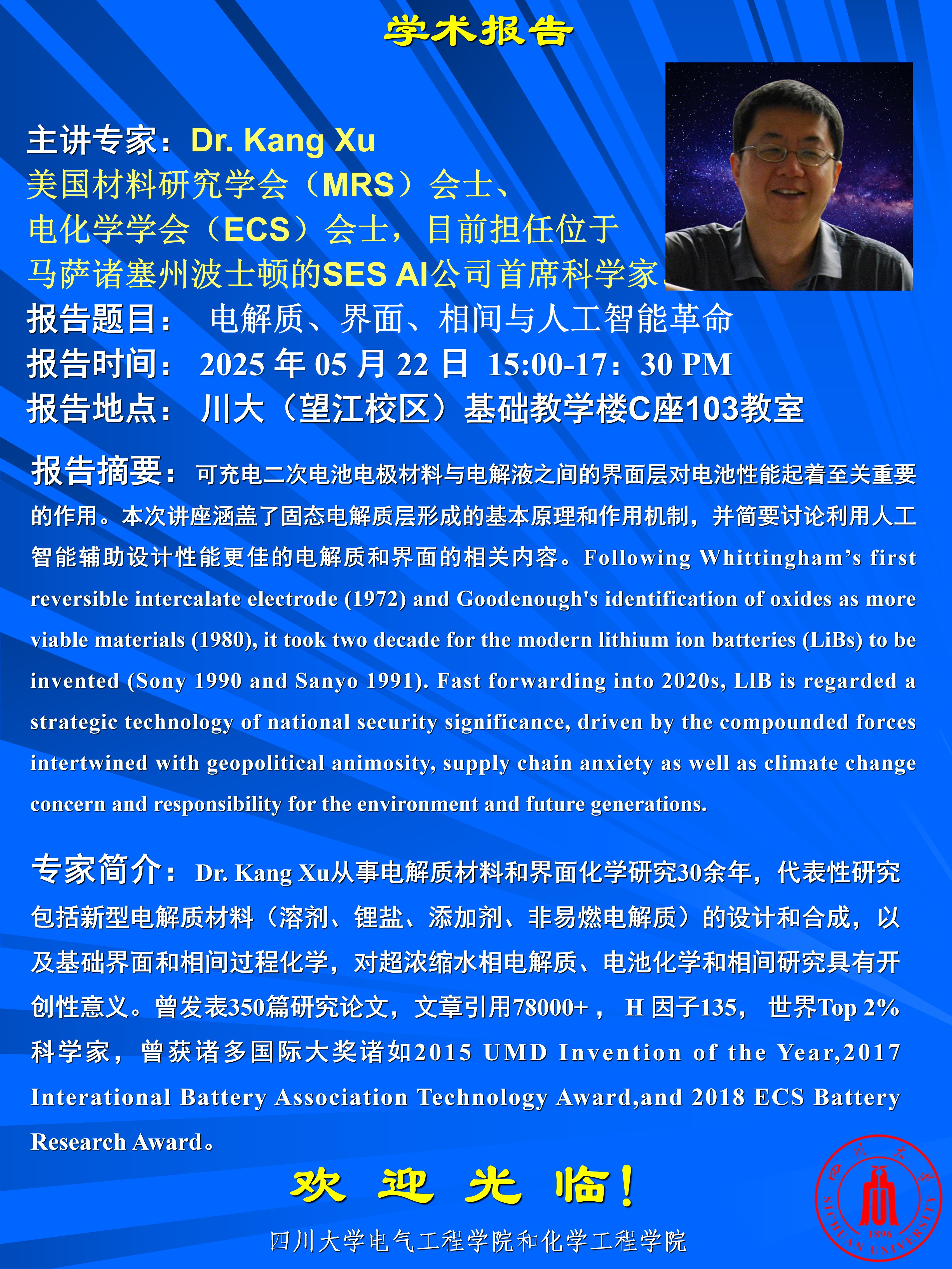 讲座老师 Dr. Kang Xu 讲座地点 基础教学楼C-103