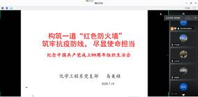 化工系教工党支部通过腾讯会议举行了庆祝中国共产党成立99周年组织生活会。支部党员参加了此次活动,活动由化工系党支部书记易美桂同志主持。