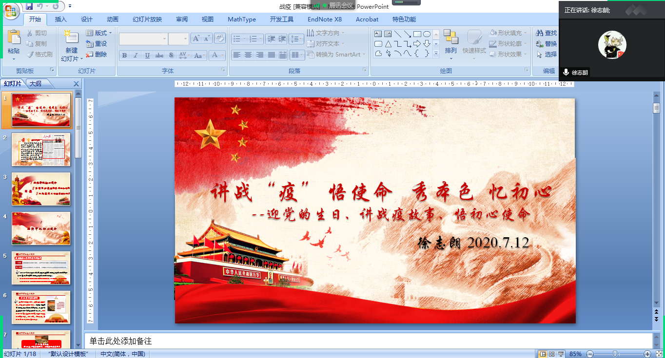 研究生第六党支部活动——微党课如期举行,会议采取线上的方式并由党支部书记徐志朗同志主持。