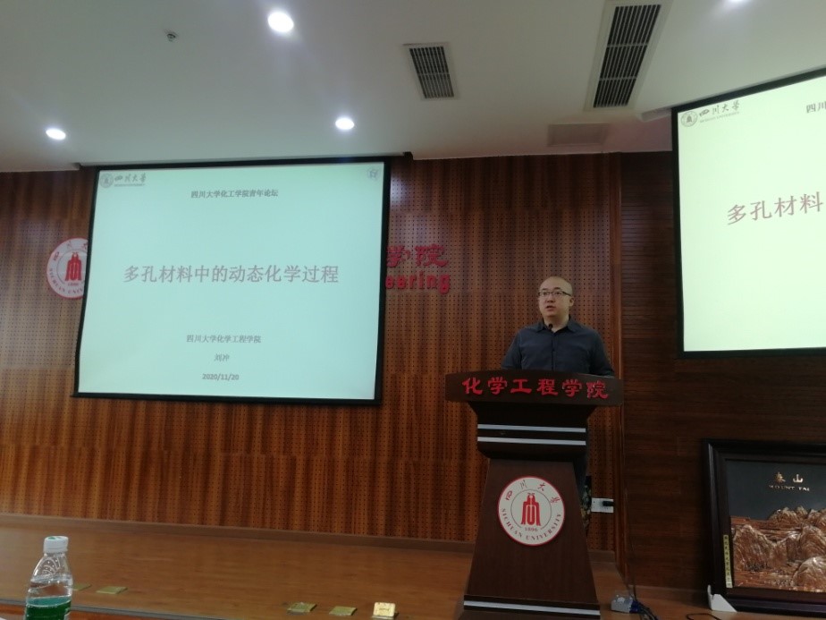 首届化工青年学者论坛中,彭强老师作了题为《有机聚合物太阳能电池》的学术报告,从国家战略需求引入研究背景,详细地讲解了围绕有机聚合物太阳能电池开展的最新研究进展;刘冲老师作了题为《多孔材料中的动态化学过程》的学术报告,细致地讲解了MOF材料的应用前景、基本构造、制备过程和课题组近期的研究进展;赵辉老师作了题为《化学燃料驱动的非平衡态乳液聚合》的学术报告,为解决乳液聚合存在的破乳难题,提出耗散型乳化剂的制备,并发散至非平衡态振荡反应的研究。参会师生就学术报告内容和学科交叉发展等问题展开了热烈而充分的讨论。