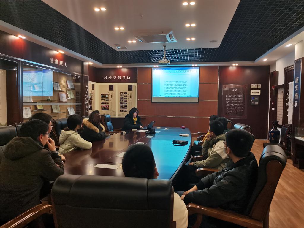 研究生第四党支部支部书记周欣同志主持召开向周永开等7名同志学习会议。