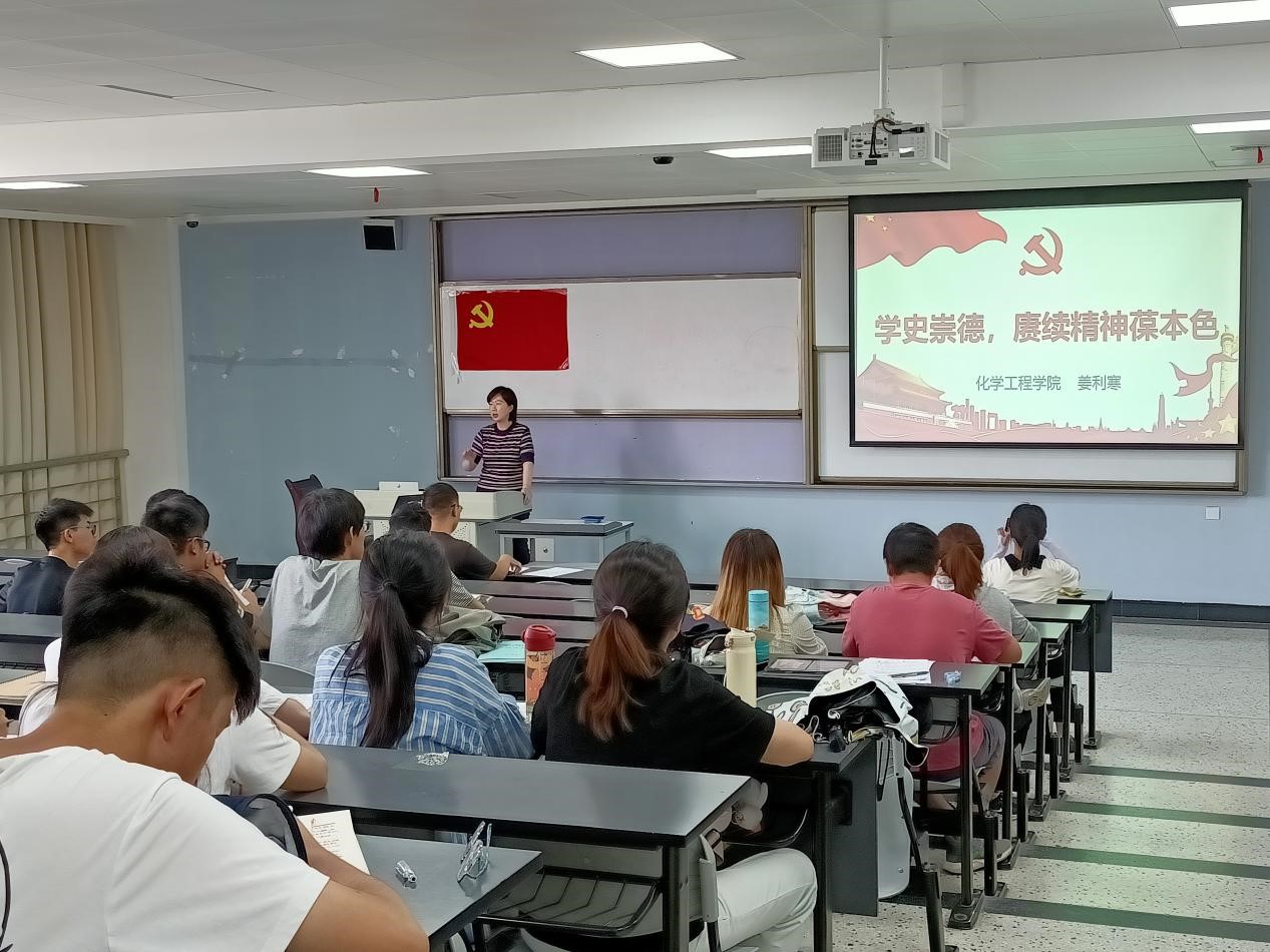 2017级辅导员李珍珍老师主持,党支部书记姜利寒进行了主题为“学史崇德,赓续精神葆本色”的党史学习教育专题党课,同时参会的还有楼凤