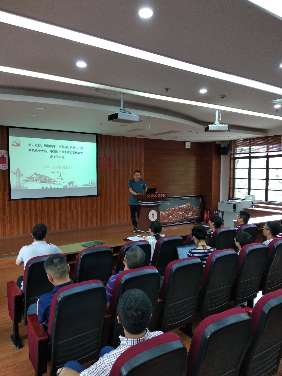 副院长、院党委委员钮大文教授主讲题为“学史力行,勇担使命”的党史学习教育专题党课。制药与生物工程系党支部全体党员参加会议。