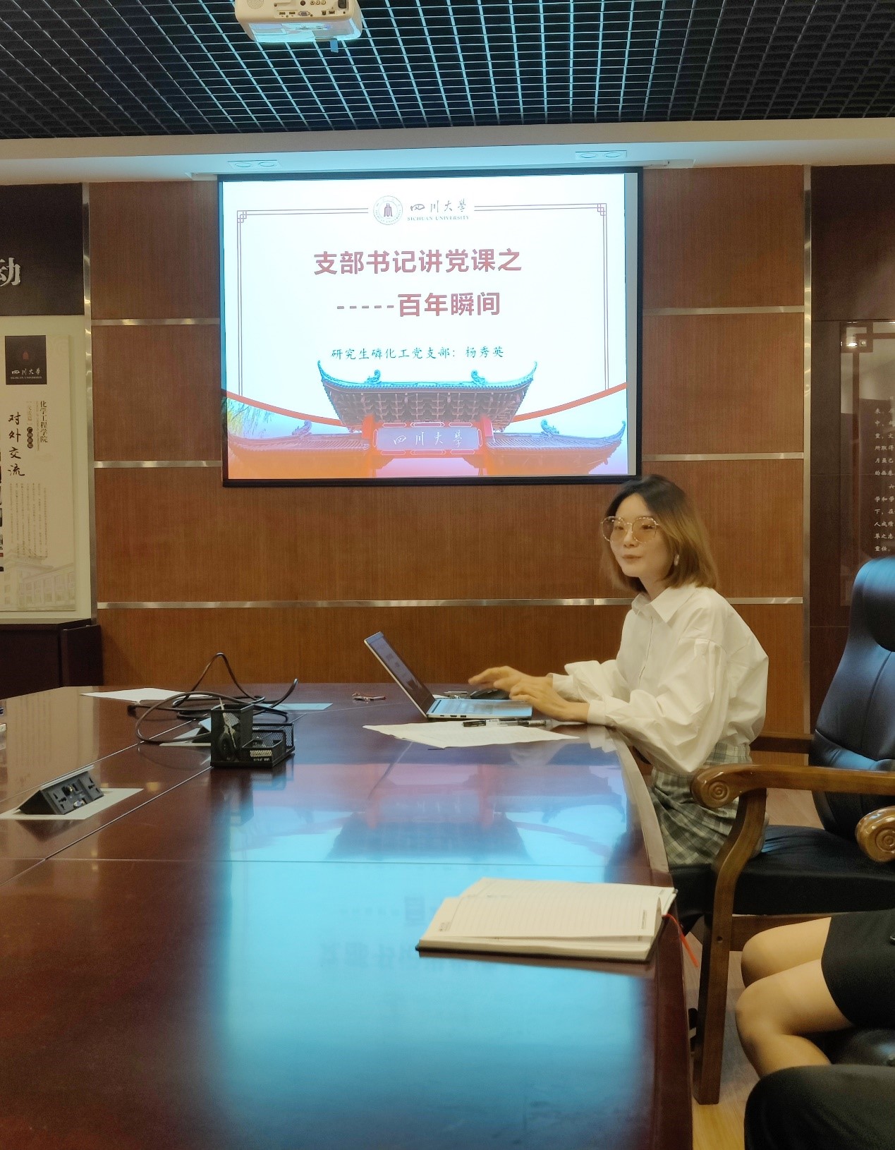 在庆祝中国共产党成立100周年之际,为了更好地学习百年党史,汲取奋进力量,于2021年6月26日下午3点,研究生磷化工党支部在化工楼245会议室成功开展了支部书记讲党课活动。此次会议由支部书记杨秀英同志主持,参会的有研究生磷化工党支部党员同志和入党积极分子。