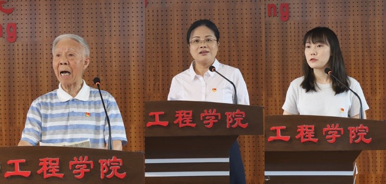 做出新的贡献;优秀共产党员代表、青年教师赖雪飞同志从坚定理想信念、牢记立德树人使命和投身教学改革实践等方面表示要以“四有”好教师为标准,争做教育教学的学习者、创造者、引导者;优秀党务工作者代表、研究生过程装备与安全科学党支部书记武雯颖同志结合“全国百个研究生样板党支部”的创建过程,表示要着力将学生支部建设成为有特色、有品牌、有辐射的党组织,加强思想政治引领,筑牢学生理想信念根基,引导学生刻苦学习、全面发展、健康成长。