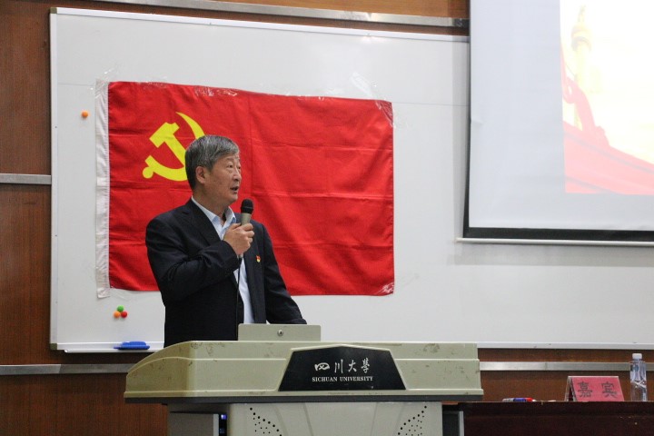 庞书记授课分为两大部分。第一部分以“不忘初心,一百年的奋斗历程”为主题。庞书记满怀热忱地讲解了“浴血奋战,实现民族独立和人民解放”的建党、大革命、土地革命战争、抗日战争、解放战争的历史阶段;“艰难探索,社会主义建设在曲折中前进”的新中国成立、社会主义革命和建设时期;“改革开放,走上中国特色社会主义新道路”的我国社会主义建设事业辉煌成就;“十八大以来一系列历史性成就”;“党的十九大盛况和主要成果”等五部分内容。庞书记在总结时强调,历史和现实总是反复证明:只有中国共产党才能救中国,只有中国共产党才能发展中国,我们川大青年学子,应当在感悟党的初心使命中,砥砺初心品质,方能行稳致远,奋勇前行。