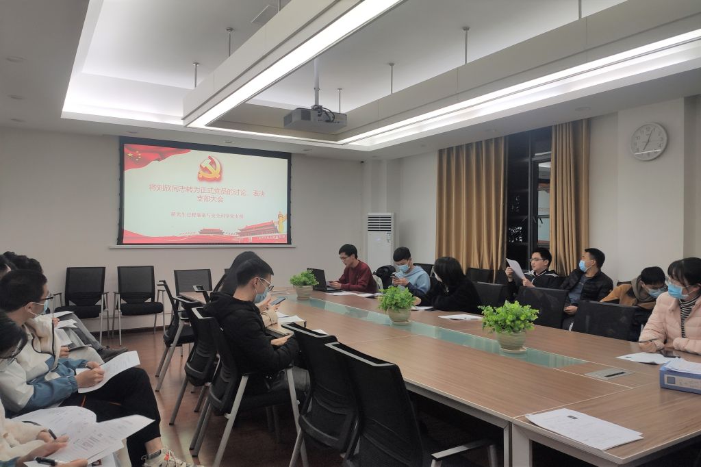 2021年11月25日,研究生过程装备与安全科学党支部就将刘欣同志转为正式党员的支部大会在我校化工楼227会议室开展。本次支部大会由支部书记邓松同志主持。