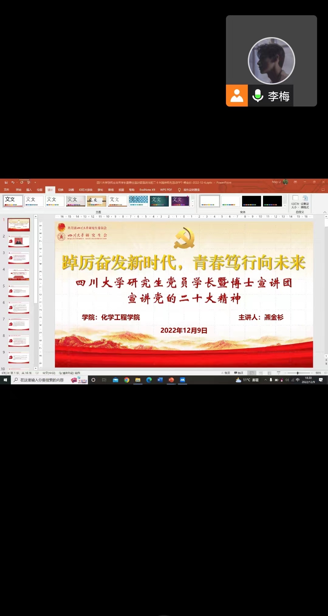 研究生第二党支部采用线上的方式开展了学习党的二十大精神的活动以及关于是否确定汪小坤同志发展为中共正式党员的讨论表决大会。会议由支部纪检委员熊金衫同志主持。