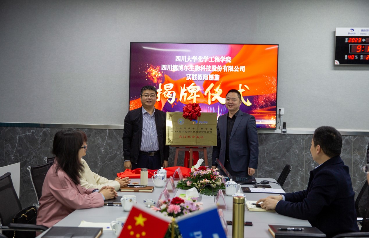 与四川德博尔制药有限公司共建实践教育基地。该实践教育基地已开始接纳生物工程专业本科生进行生产实习,未来还将接纳研究生到公司来进行企业实践和完成毕业论文。建设实践教育基地是双方进行产学结合,努力把课堂教学和企业生产实践相结合、协同育人的具体体现,将为培养一流工科专业人才提供了有力支撑。