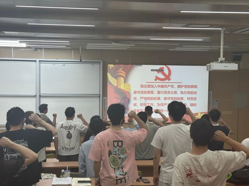 会议第四项,在党支部书记帕哈尔定同志的带领下,支部全体参会人员进行入党宣誓,对整个会议进行了总结,希望陈禹等五位同志,不断努力提高自身的政治素质,在思想上和行动上始终以党员的高标准严格要求自己,继续发挥模范带头作用。