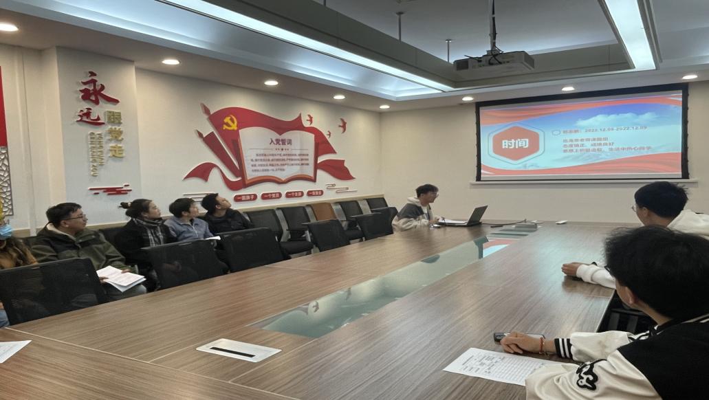 望江校区化工楼227会议室召开了党员大会。本次大会由支部书记杨柏斌主持,研究生第四党支部全体党员参加,会议主要讨论了关于杨志鹏同志预备党员转为正式党员的相关事宜。
