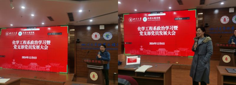 化学工程系党支部开展了组织生活与推荐确定入党积极分子大会。会议由汪伟老师主持,化学工程系全体党员同志参加。会议伊始,汪伟老师对近期支部党员发展工作进行了介绍,并就李红娇、邹宗鹏两位入党积极分子候选人的具体情况进行了详细介绍。在会议上,谢锐、唐思扬、吉俊懿等化工系党支部多位党员教师对两位入党积极分子候选人的情况进行了讨论和评议,充分肯定了两位候选人在思想政治、教书育人及社会服务等诸多方面的良好表现。通过民主推荐和评议,两位候选人被接受确定为入党积极分子。