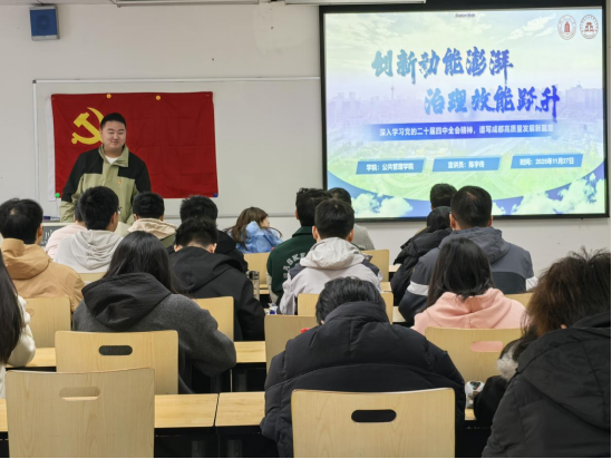陈宇佟同志以“深入学习党的二十届四中全会精神,谱写成都高质量发展新篇章”为主题,结合成都本地化率超90%的扎实发展实效、“天行者2号”等创新项目加速落地的生动实践,聚焦“创新动能澎湃、治理效能跃升”核心,阐述如何以全会精神为引领,激活城市创新与治理活力,为成都高质量发展注入更强劲动能。