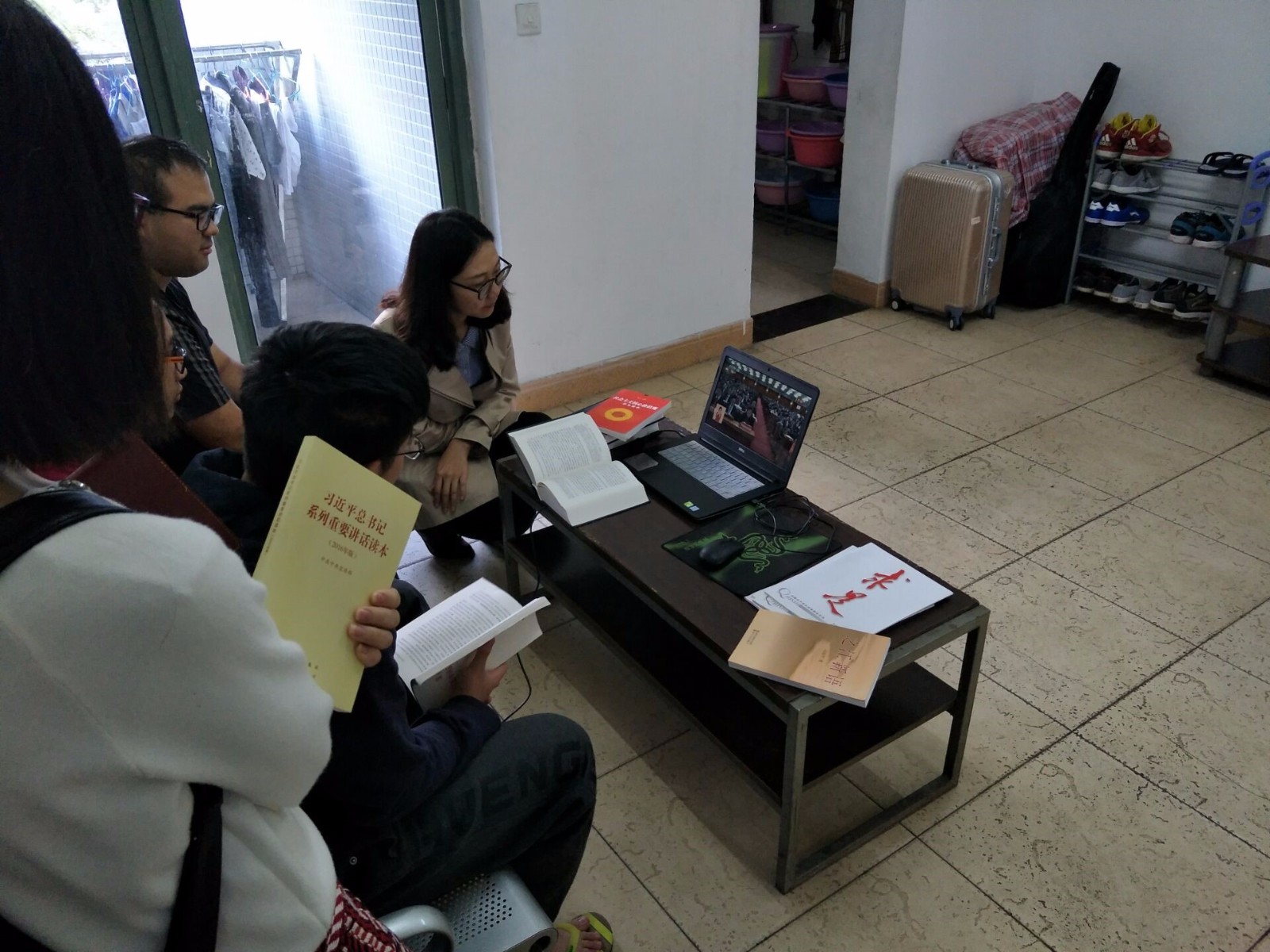 社区党支部教师党员、学生党员深入学生寝室和江安社区同学一同观看了十九大开幕式,认真聆听了习近平总书记的报告,进行了座谈讨论。