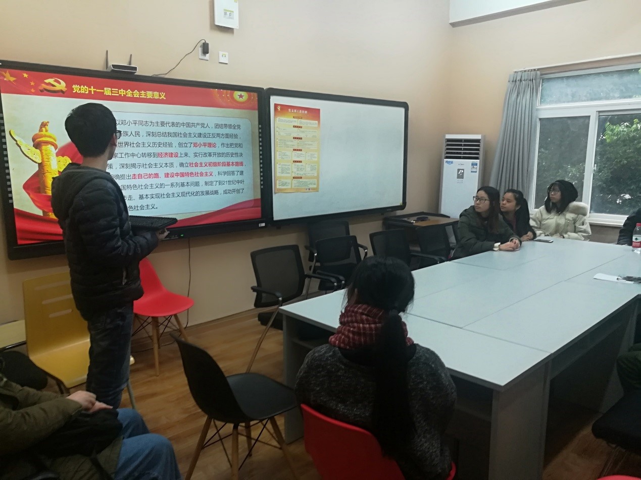 江安校区三舍活动室召开庆祝改革开放40周年大会讲话专题学习组织生活会,此次会议由冯怡同志主持,全体支部成员参加会议。