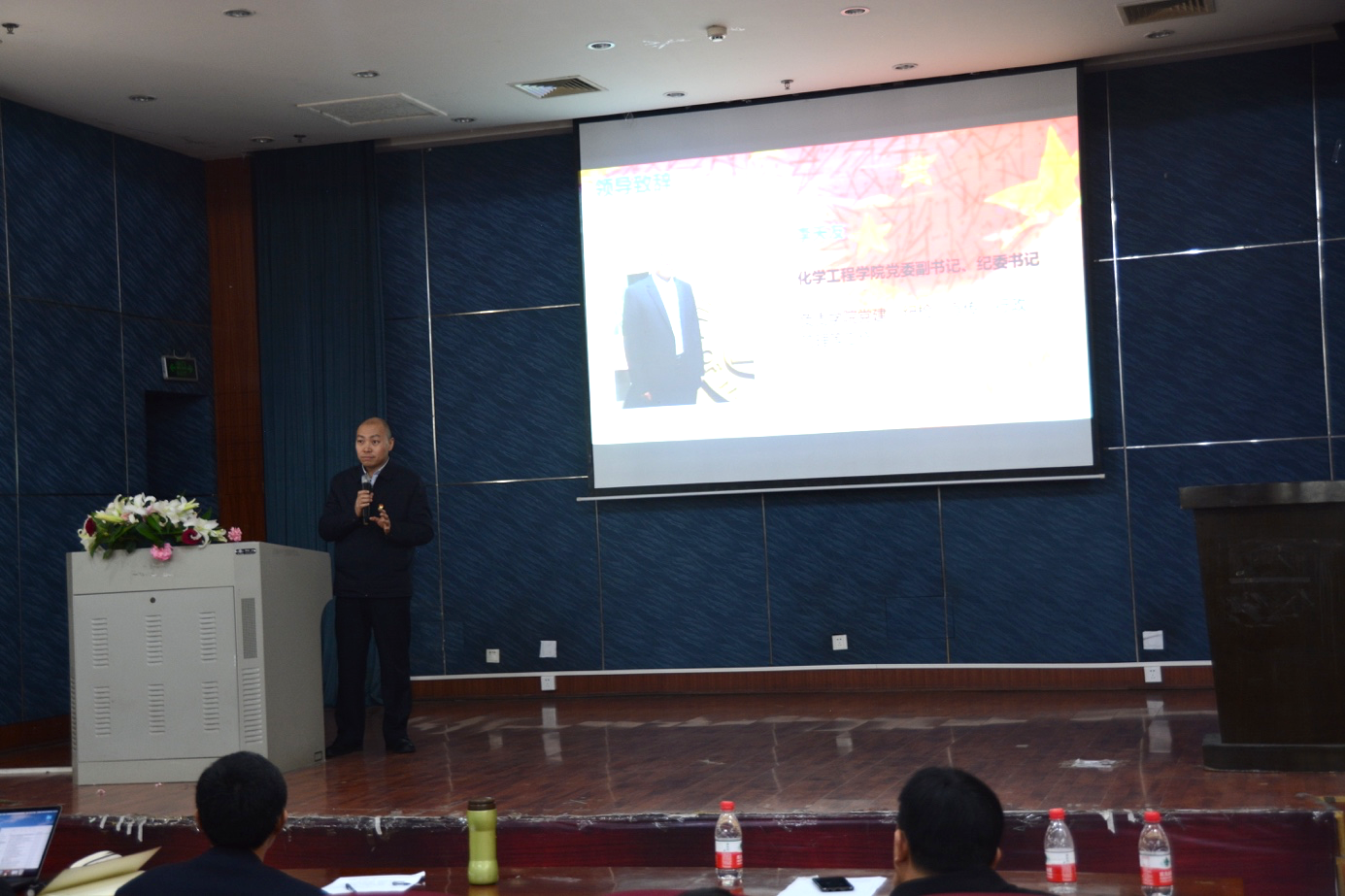 院长赵长生同志代表化工系支部党员发言,指出教师和学生“不忘初心,牢记使命”应该换位思考,结合实际思考我们应该怎么做,教师以立德树人为根本,学生以如何成才为己任。化工系主任袁绍军同志介绍了楼凤