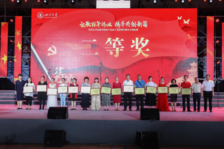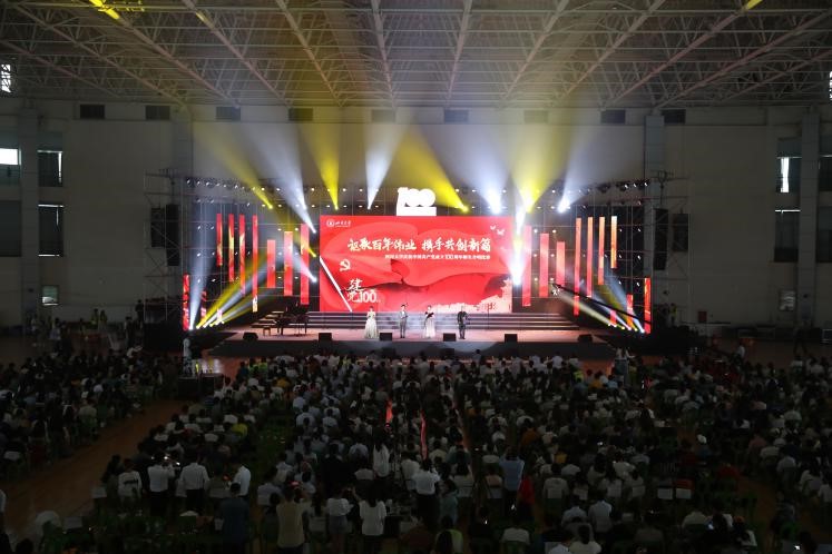 庆祝中国共产党成立100周年师生合唱比赛在江安校区体育馆隆重举行。校党委常务副书记曹萍、副校长李蓉军、校党委副书记郭勇,及学校各单位负责人、有关部门负责人、师生代表共同观看了比赛。