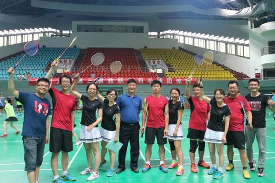 党委书记任教练、8名参赛队员组成的教职工羽毛球队。赛前,为发扬楼凤