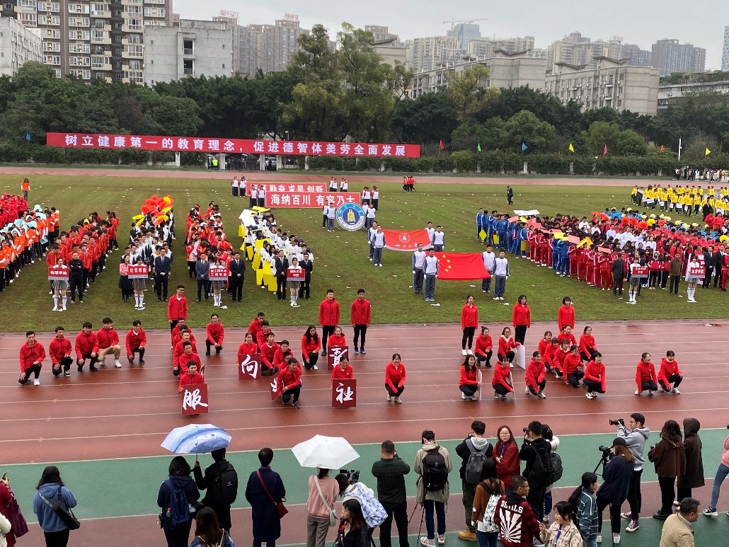 望江校区体育中心彩旗飞扬、乐声震天,2019年楼凤