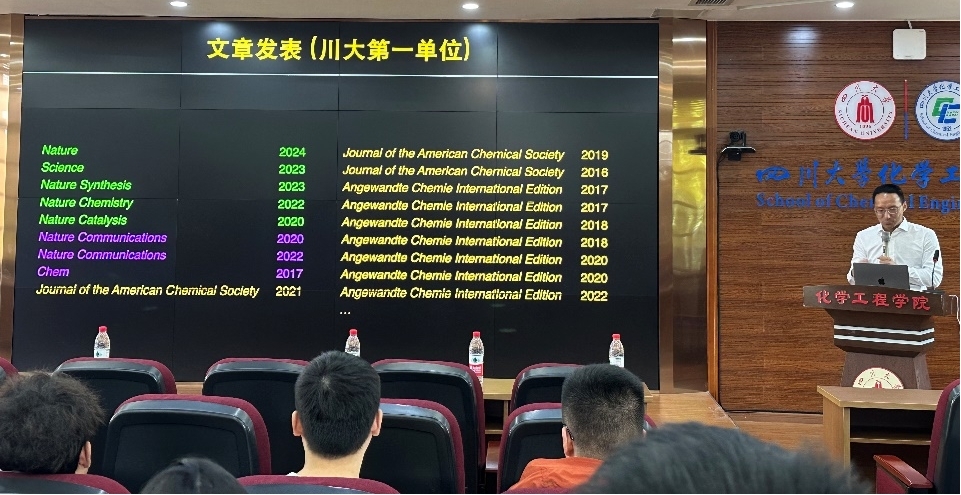 在讲座上,钮大文教授结合自己的求学履历和发表Nature 、Science、Nature catalysis、Nature Chemistry等论文经历,结合Cover letter撰写、审稿意见回复等方面与大家分享了如何寻找重要的课题、如何凝练工作创新性。钮大文教授还结合自己一篇从撰写到投稿历时三年的Nature论文投稿经历,与大家分享在科研工作者师生之间如何彼此配合共同把工作做完美。他在讲座中勉励大家一定要相信自己,不要怕拒稿,要对自己的工作有信心。最后,钮大文教授认真回答了与会师生有如何判断课题重要性、如何与编辑沟通等问题。本次讲座既有满满的学术干货又有对研究生学业的关心和谆谆指导,为青年教师和研究生未来科研的工作带来了巨大启发。