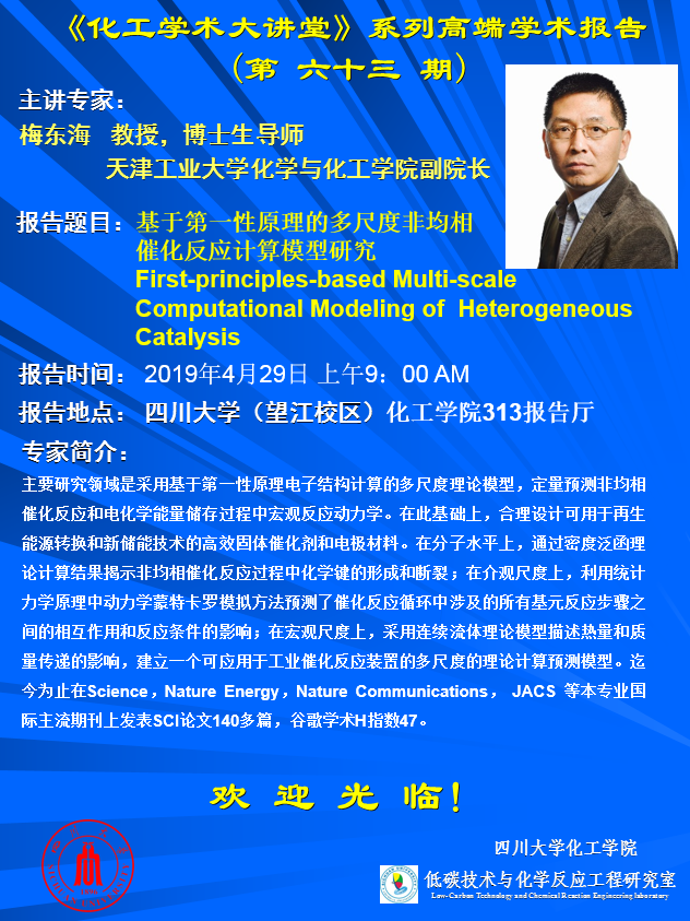 “化工学术大讲堂”系列高端学术报告学术报告(第六十三期)