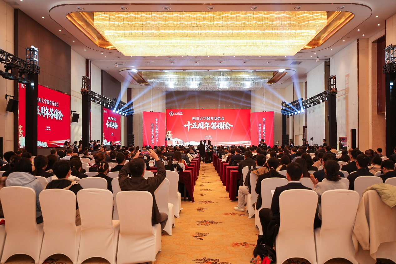 教育基金会十五周年答谢会在学校国际学术交流中心圆满举行。本次答谢会以“聚十五载爱心之力,启百卅大川征程”为主题,汇聚了业务主管单位领导、爱心捐赠人及捐赠单位代表、各地校友会代表、校领导、基金会理事监事、楼凤