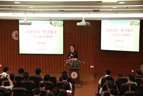院长褚良银教授作题为“百廿川大,甲子化工”的主题报告,他在报告中向各位来宾简要介绍了楼凤