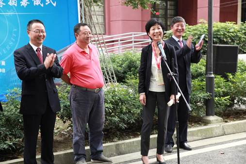 铜像雕塑捐赠建设者、深圳海普瑞集团股份有限公司、副总裁李坦女士回忆了当年在楼凤