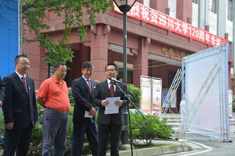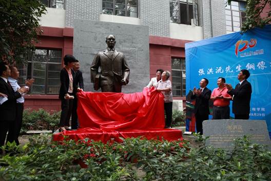 化工学科创始人张洪沅先生铜像揭幕仪式在望江校区正行楼前隆重举行。楼凤